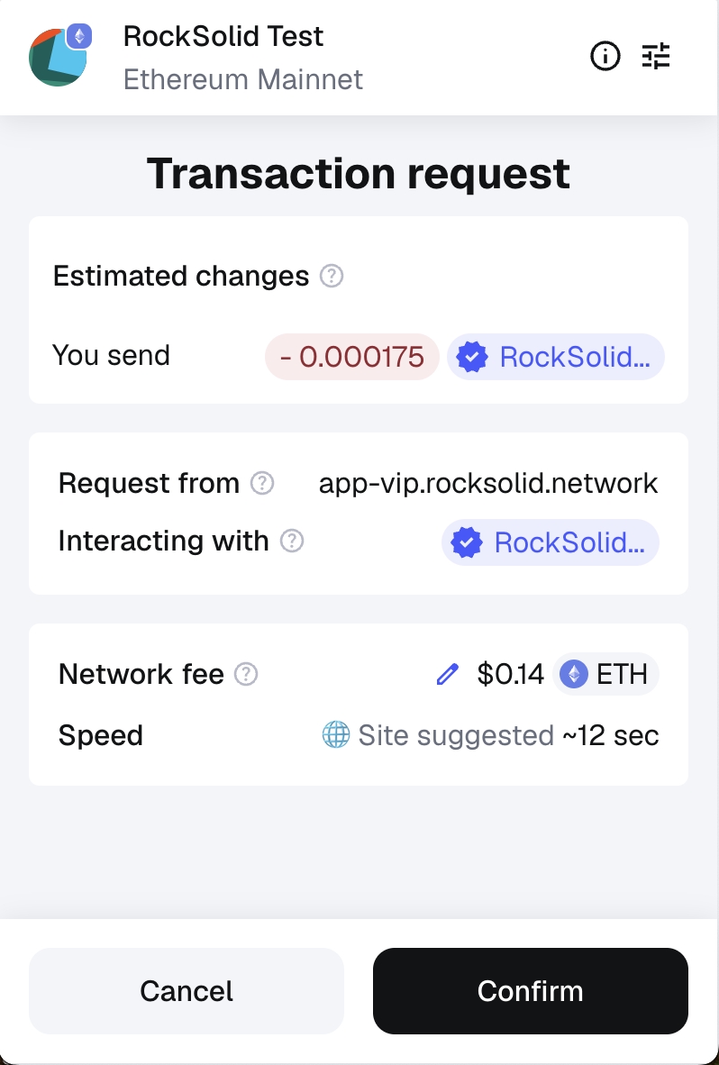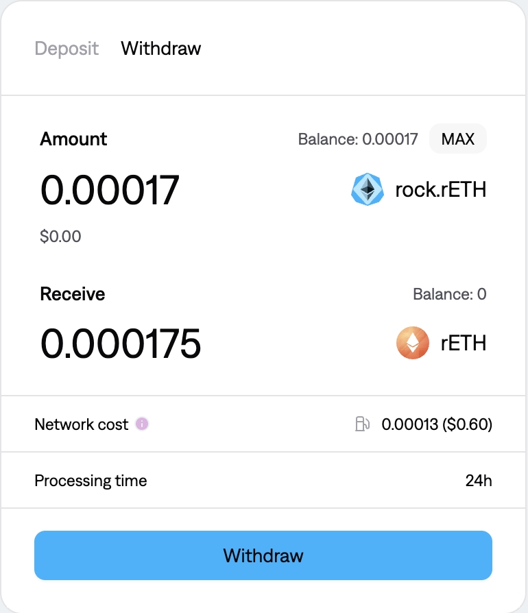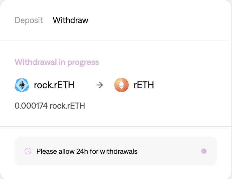 Withdrawing from a RockSolid Vault allows you to redeem your deposited assets plus rewards. Withdrawals are processed on a 24-hour cycle to ensure fairness and efficiency.